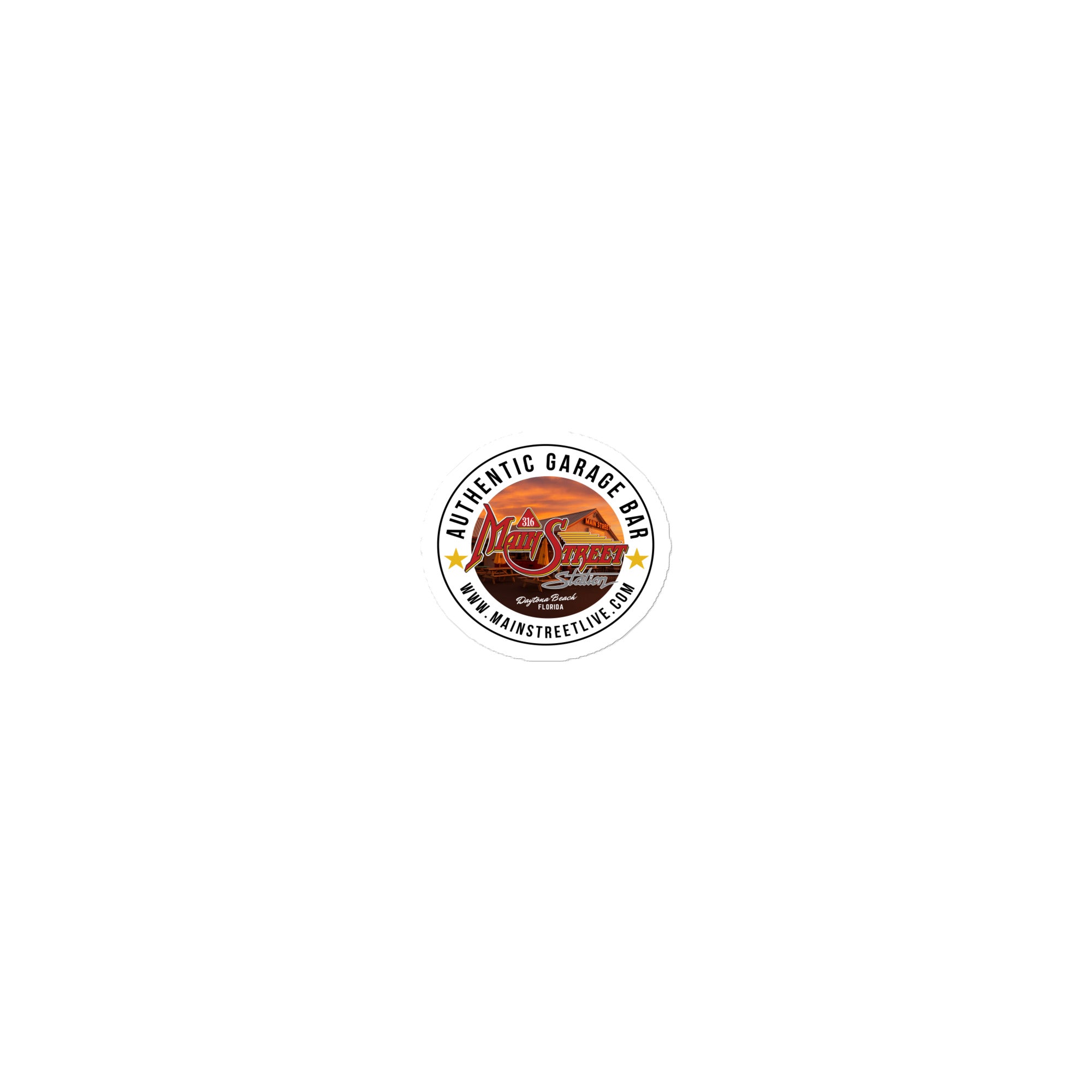 This official Main Street Station sticker features our Authentic Garage Bar design—straight from 316 Main Street in Daytona Beach. Built to last and made to stand out, it’s perfect for coolers, toolboxes, bikes, cars, laptops, and anywhere you want to rep the garage.